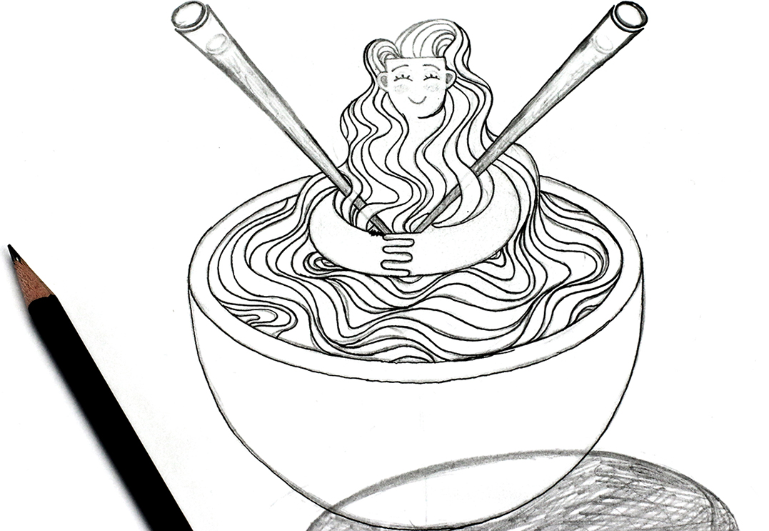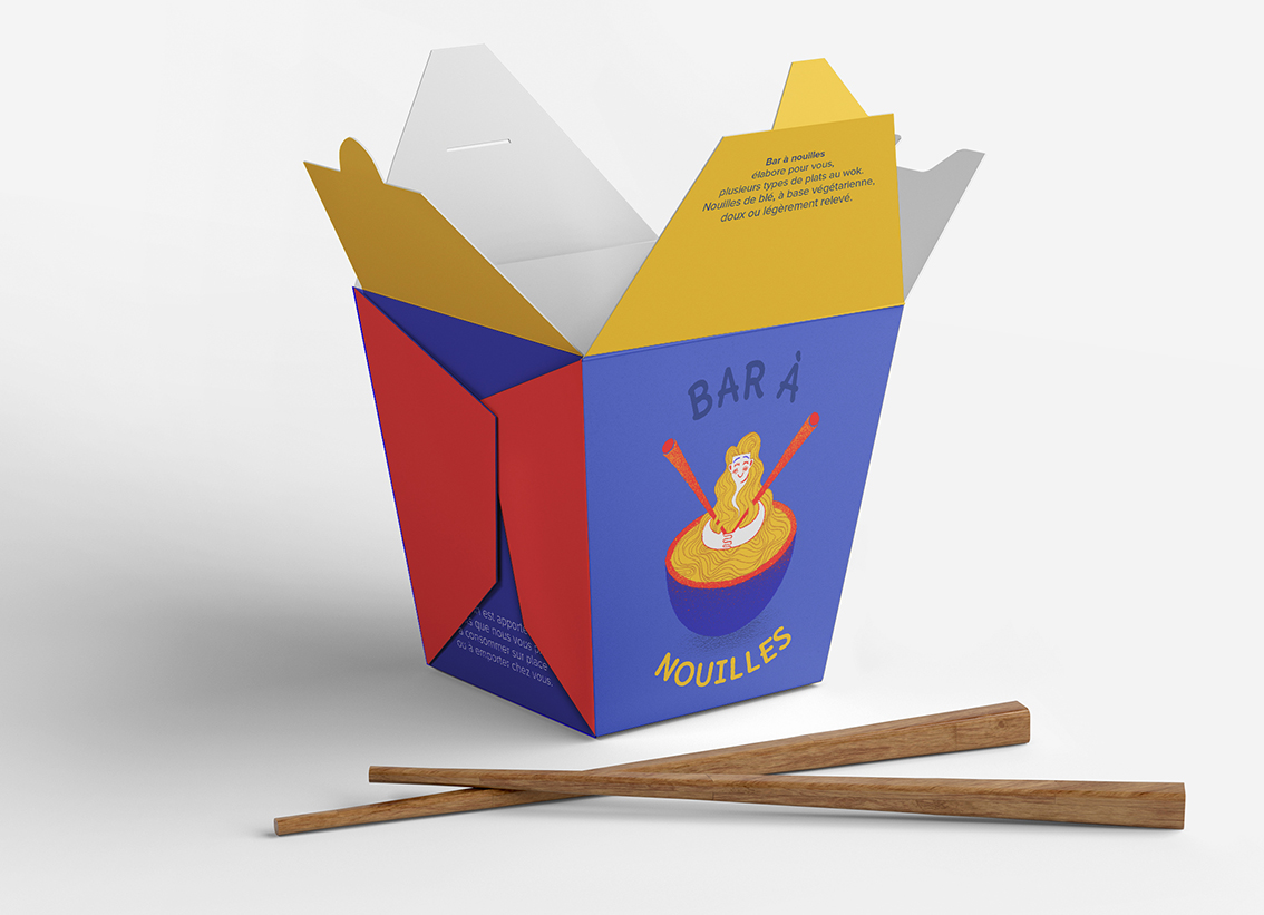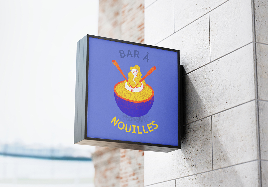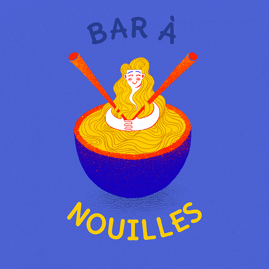 CONTEXTE : Création d’un logo illustré pour un bar à nouilles. Visuel déclinable sur différents outils de communication (enseigne, packaging support imprimé, textile). Le public cible : adolescent, adulte. OBJECTIF : Avec une palette de couleur réduite, crée un visuel fait à la main (rappel du « fait maison »), attachant et impactant, mêlé d’une touche d’humour, car on mange mieux avec le sourire ! LIVRABLE : Illustration numérique pour supports digitaux et quadrichromie pour supports imprimable. Mathieutucker.com – 2020
